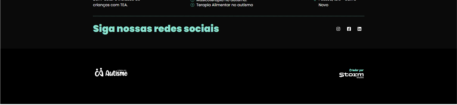 O site desenvolvido pela Storm Studio foi pensado para traduzir a essência da clínica: cuidado, profissionalismo e resultados. Com um design moderno, navegação intuitiva e foco na experiência das famílias, a página apresenta de forma clara nossas especialidades, estrutura e compromisso em transformar vidas.